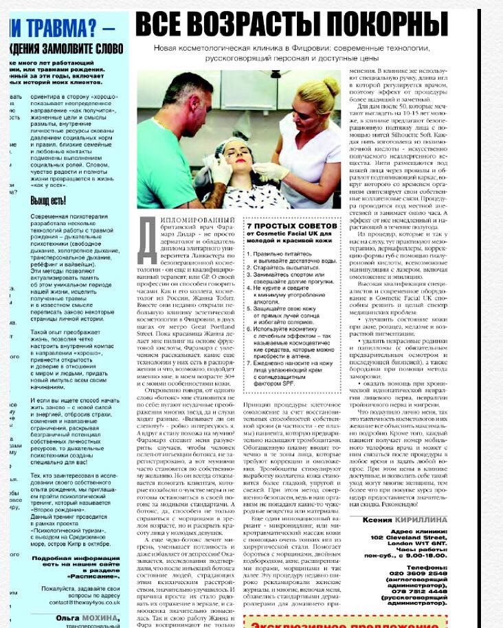 eye ball rejuvenation in Cosmetic facial published as news paper article